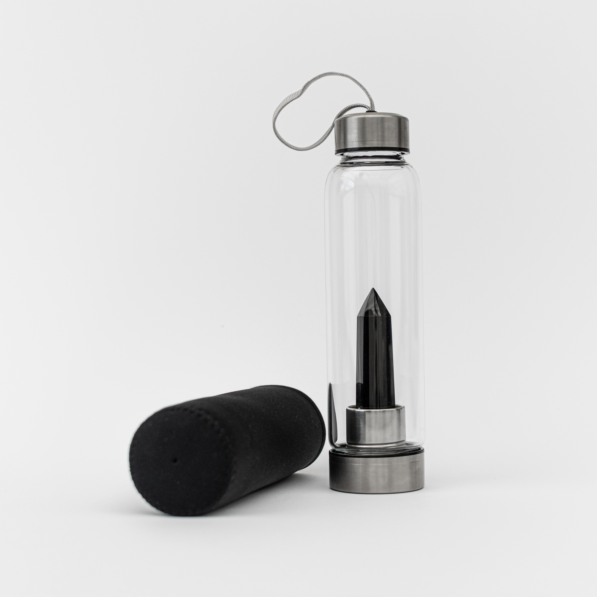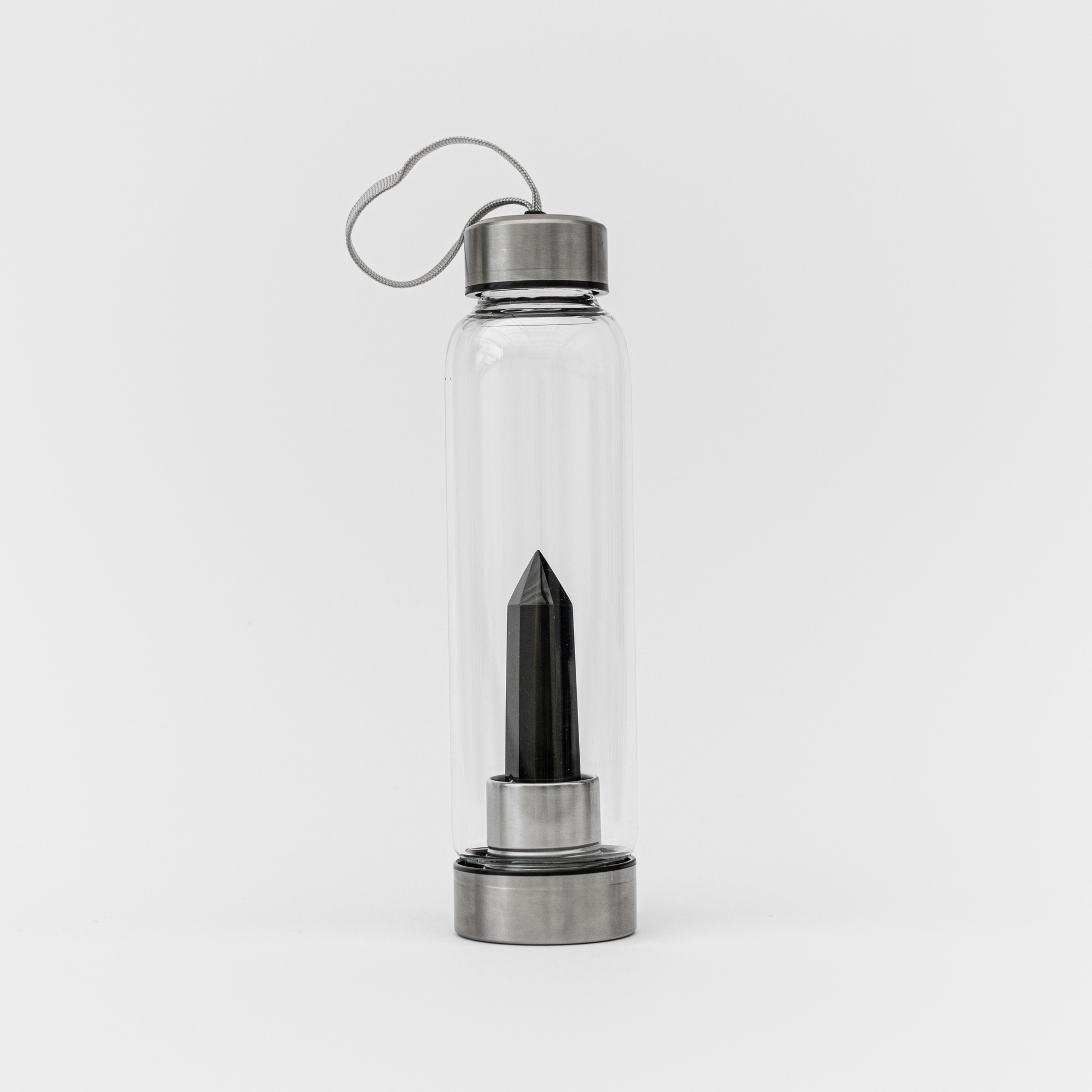 Gem Bottle Obsidiana Negra – Botella de vidrio con obelisco de cuarzo obsidiana